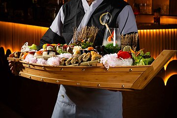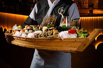 Sushi, Cocktails & More verspricht die asiatische Lokalität, die sich als bunter Farbtupfer in die unterschiedlichen Gastroangebote auf der Wilsdruffer Straße einfügt. Im stilvollen Ambiente kann man hier die japanische Küche genießen - wobei Sushi hier der absolute Top-Tipp ist. Schließlich ist die Sushi-Kultur ein Genuss für alle Sinne. Über Jahrhunderte in unzähligen Variationen entwickelt, werden die Speisen vom Koch vor den Augen der Gäste zelebriert. Oberstes Gebot der japanischen Küche nach Qualität und Frische ist die Abwechslung. Sushi ist mehr als ein gesunder abwechslungsreicher Snack, vor allem die kunstvoll angerichteten Häppchen fallen sofort ins Auge und sind der Anziehungspunkt an jedem Buffet. Besuchen Sie dazu die oft angebotenen mehrgängigen Buffets mit der großen Auswahl von Sushi und warmen Gerichten aus der fernöstlichen Küche. Bevor der Gaumen etwas zum Staunen bekommt und sich die Gäste an der kreativen Zubereitung der jahrhundertealten Variationen erfreuen, können die Augen und Sinne das Ambiente auf sich wirken lassen: gedämpftes Licht und ein großes Aquarium gestalten den Raum und dessen Herzstück, die Sushi-Bar, an der der Koch zaubert. Aber nicht nur Sushi kann man hier genießen, die Getränke stehen in diesem Restaurant natürlich nicht hinten an. Doch es sind nicht nur Cocktails, die serviert werden, beispielsweise kann der Gast aus 17 Sorten grünen Tee wählen.